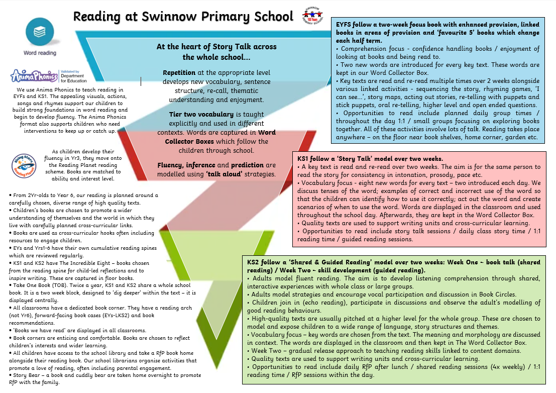 At Swinnow Primary, we recognise that reading is fundamental to a child’s development as an independent and successful learner. It is our aim that all children are taught how to be fluent, accurate and confident readers, so they can read with understanding, curiosity and enjoyment.