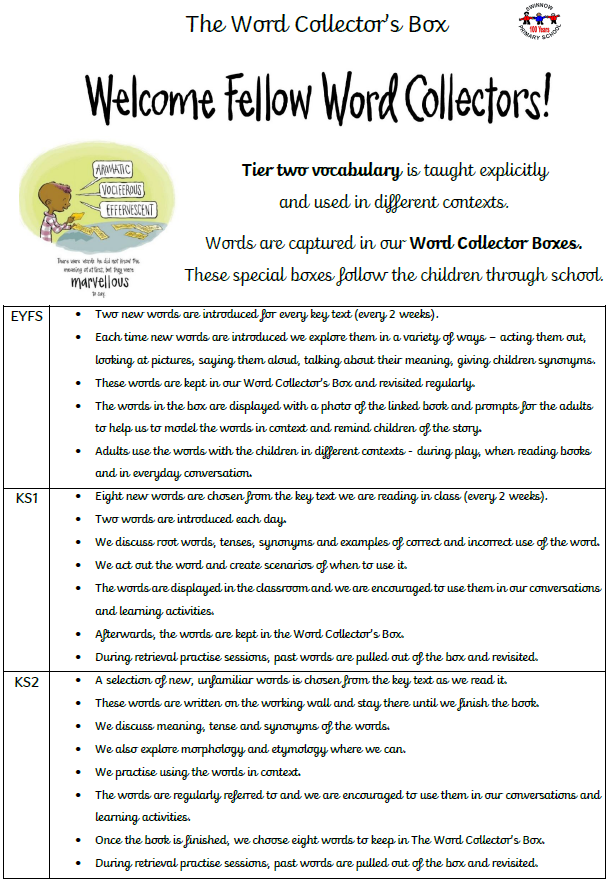 - Providing high quality texts that develop vocabulary choices and encourage discussions